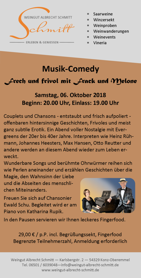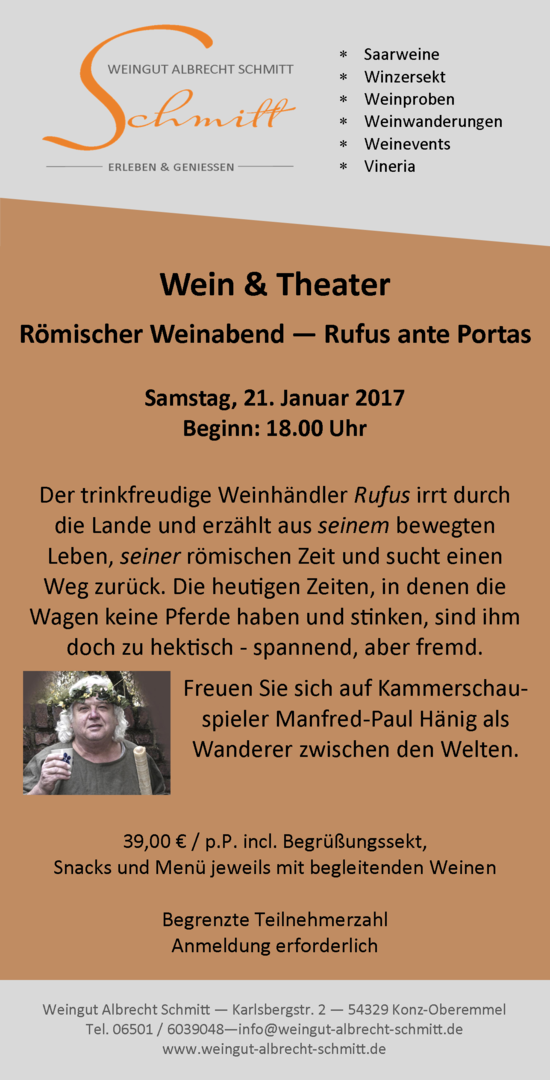 Weitere Informationen erhalten Sie über unsere Kultur- und Weinbotschafter: Claudia Kausch und Stefan Britz über weinrallyeoberemmel@gmail.com oder auf der Facebookseite www.facebook.com/events/816211291806832.